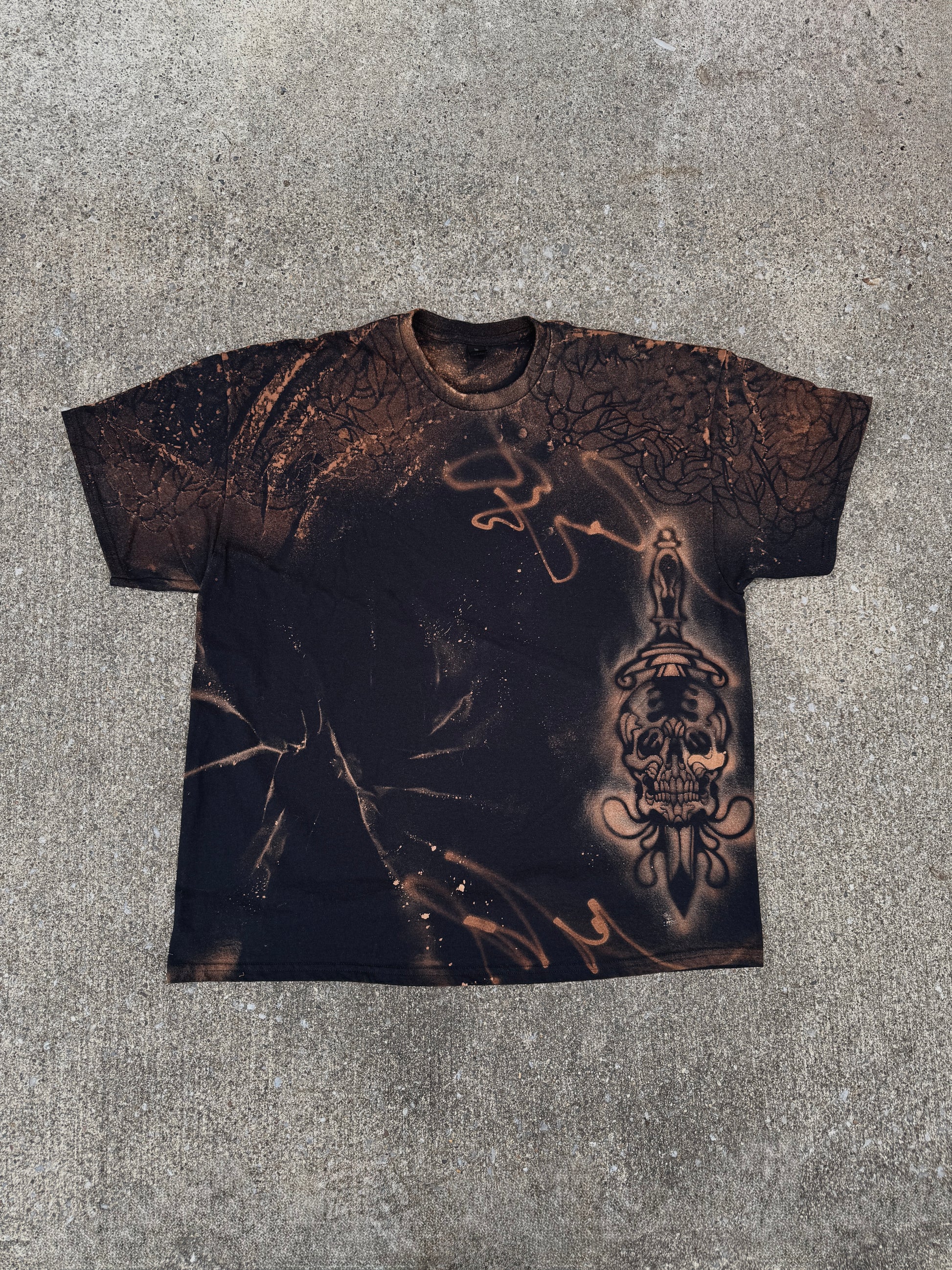 This batch of shirts is one of a kind , each stencil I use is hand drawn and then laser cut out for these shirts. Each shirt will be a little bit different because of the process. These are a heavyweight 100% cotton, and will come pre washed. I greatly appreciate you supporting my artwork. Please allow 1-2 weeks for delivery.