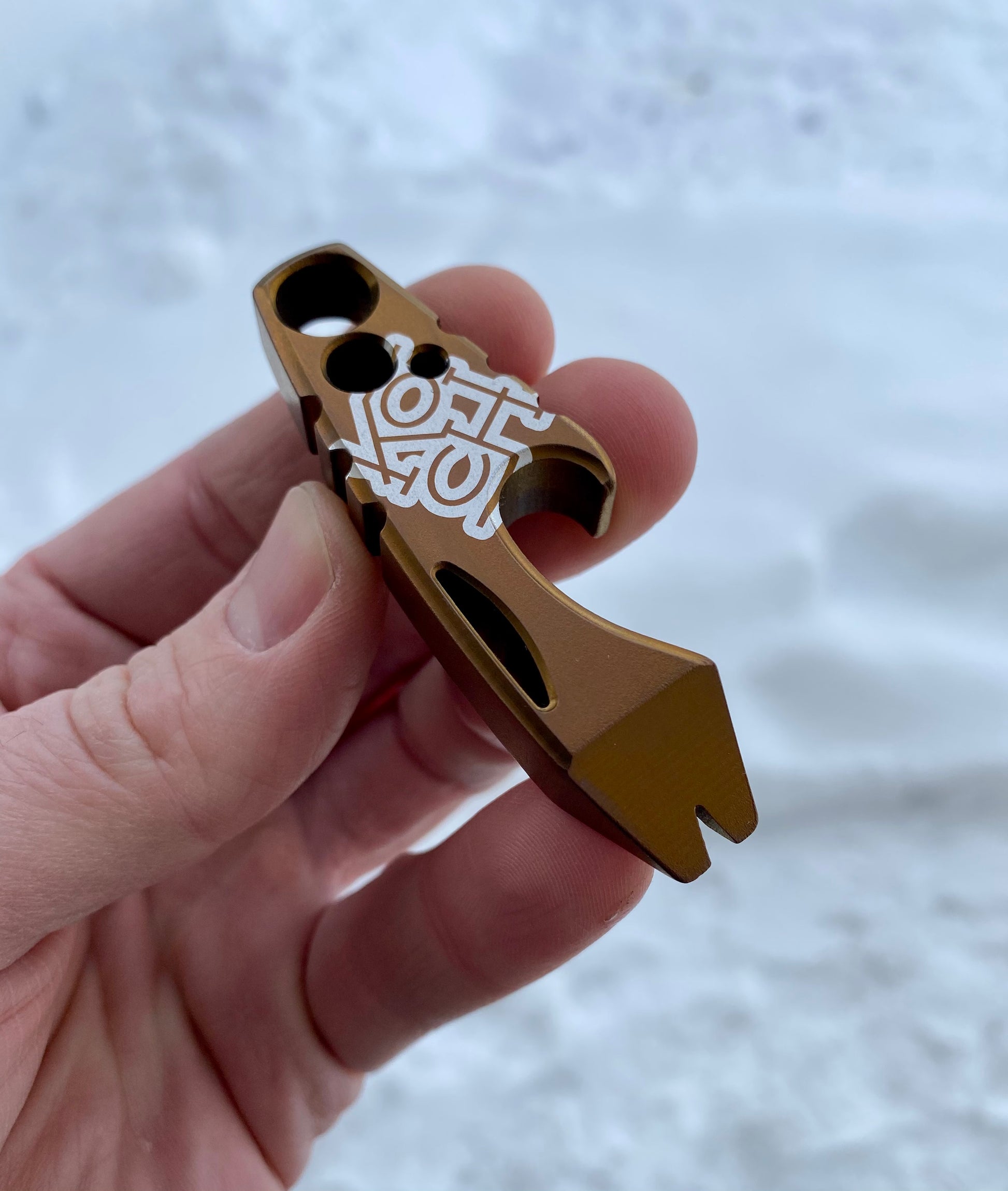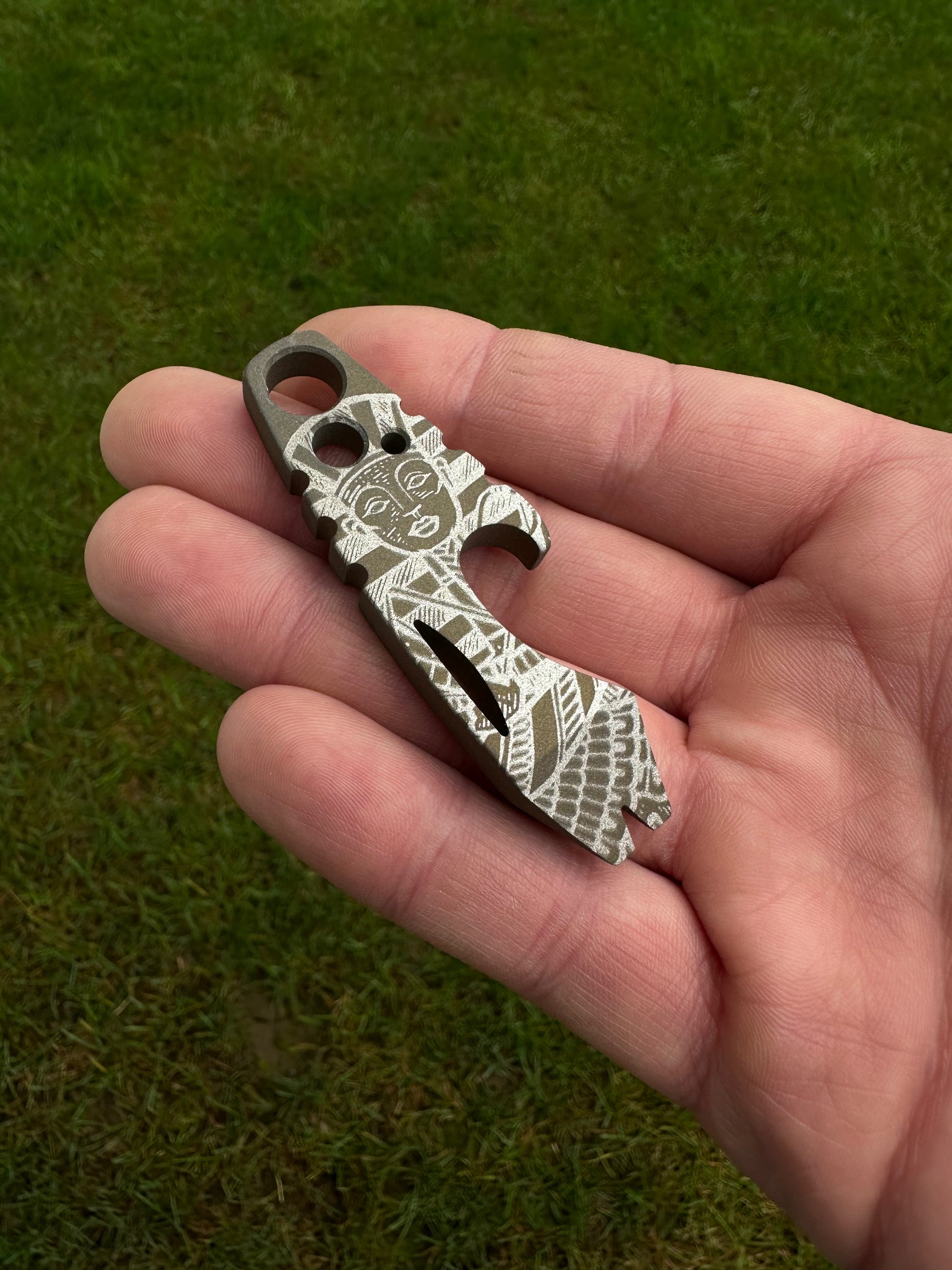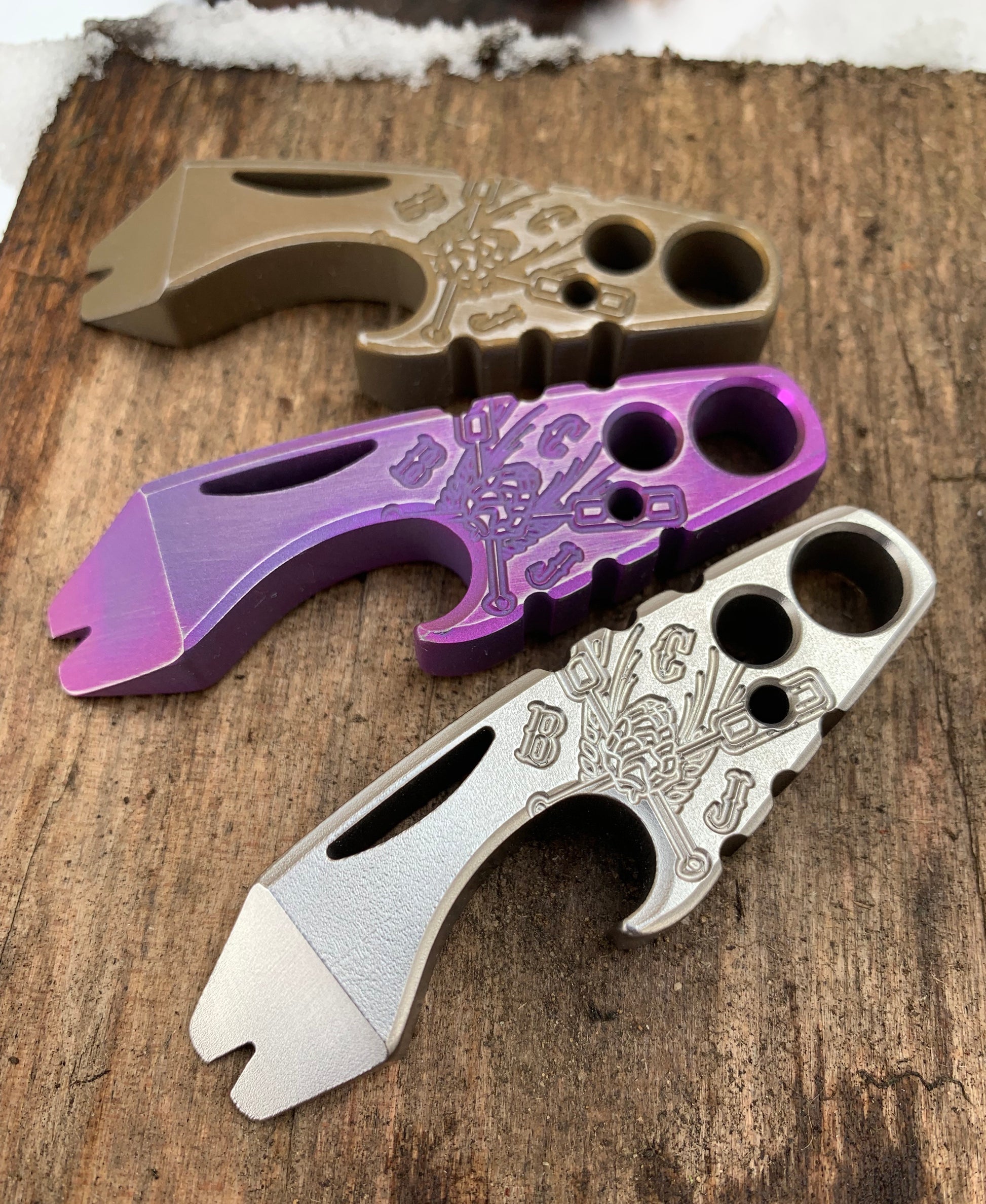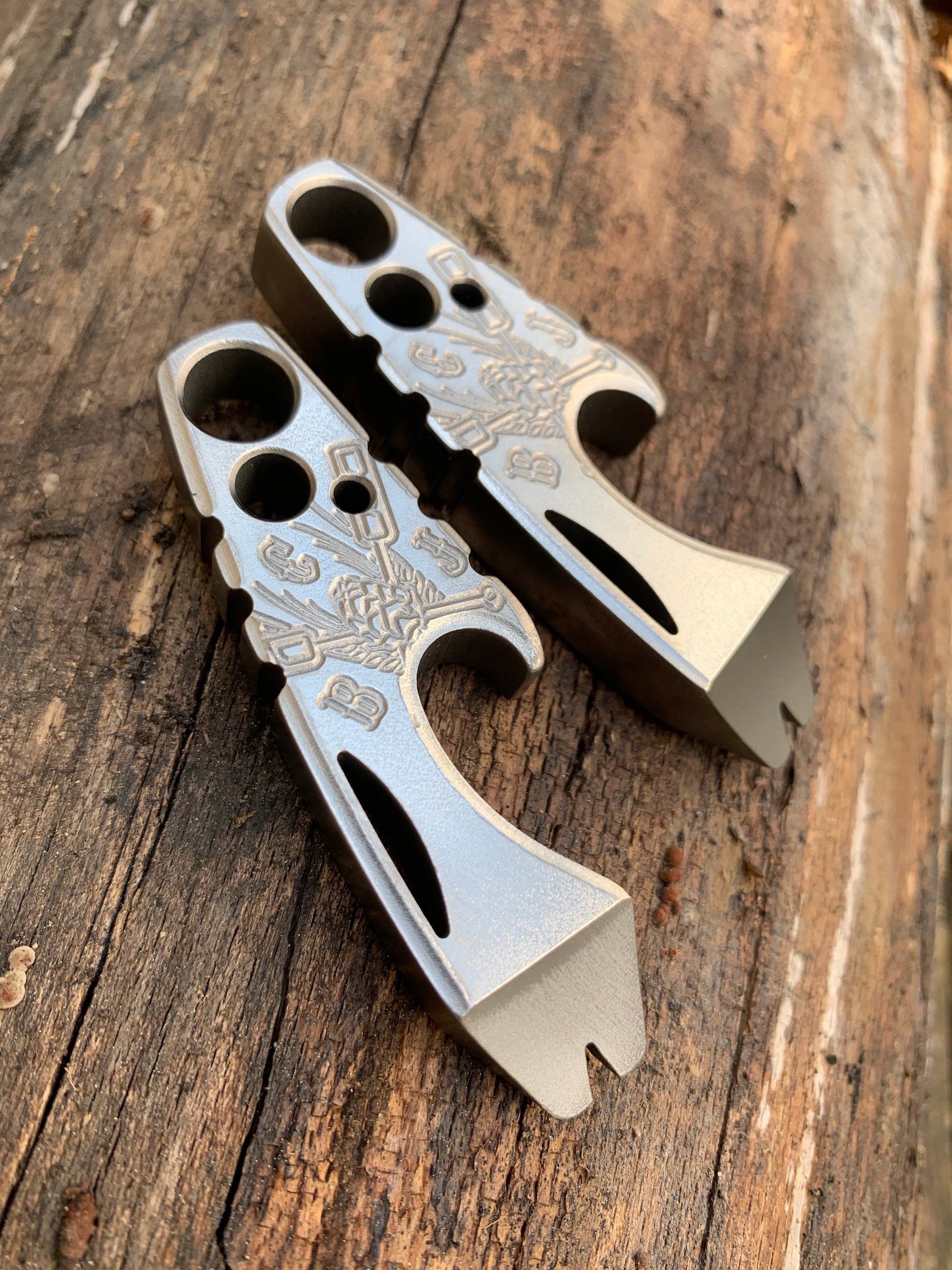 This Bottle opener / pocket tool I exclusively designed for the facebook group "Craft Brew Junkies" If you're into brews be sure to join the group. I'll have various materials and thicknesses of these, they will be described in the drop down menus when available. Thank you!! ( Product dimensions are 2 7/8" x 1" )