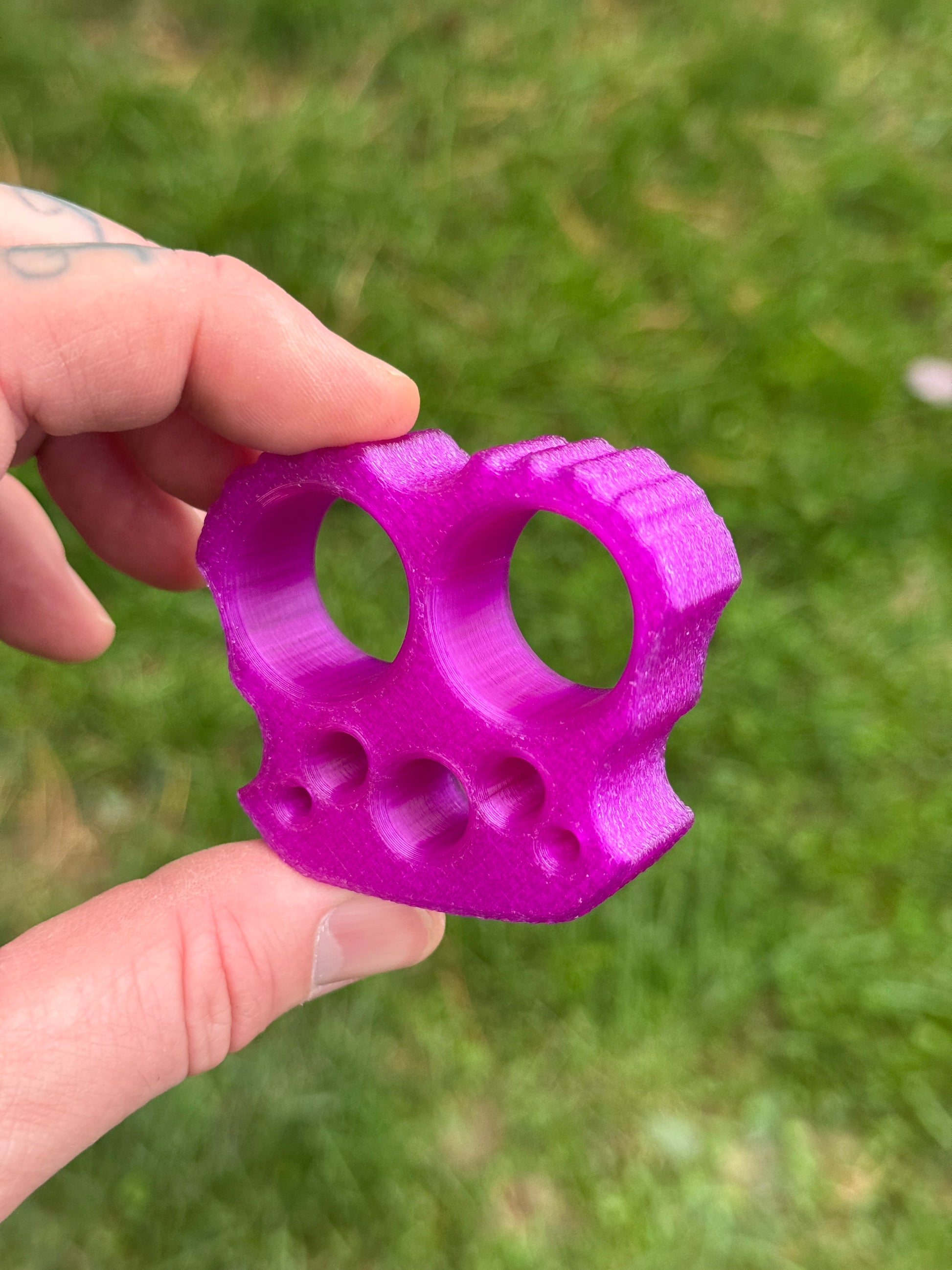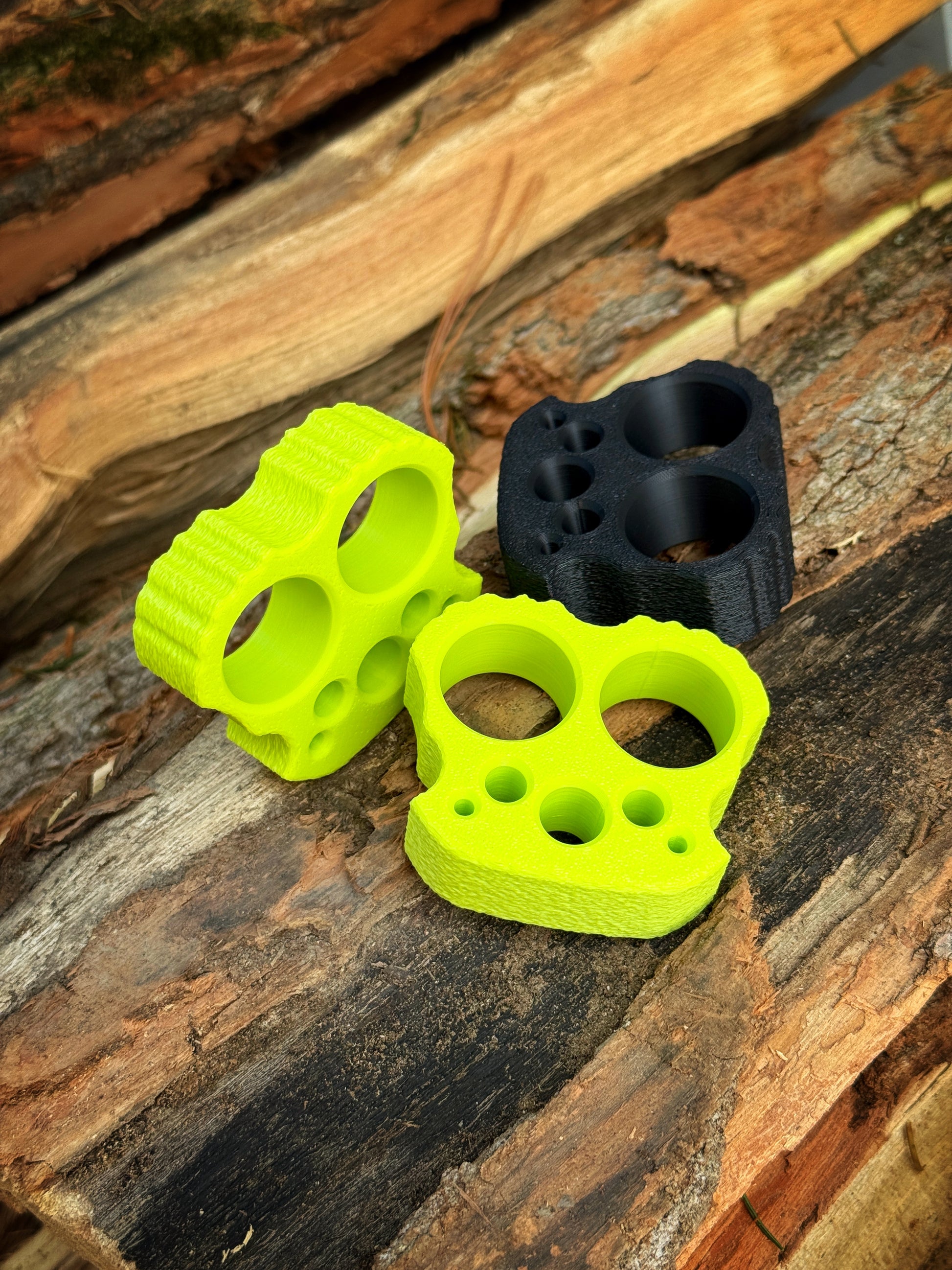 Harrison Love the symmetry of the design and functional holes. The product itself is well made and well-proportioned. Not unwieldy but has a hefty feel in hand. Obviously lighter weight that other materials and makes for a great little fidget toy as well as conversation starter. Another winner