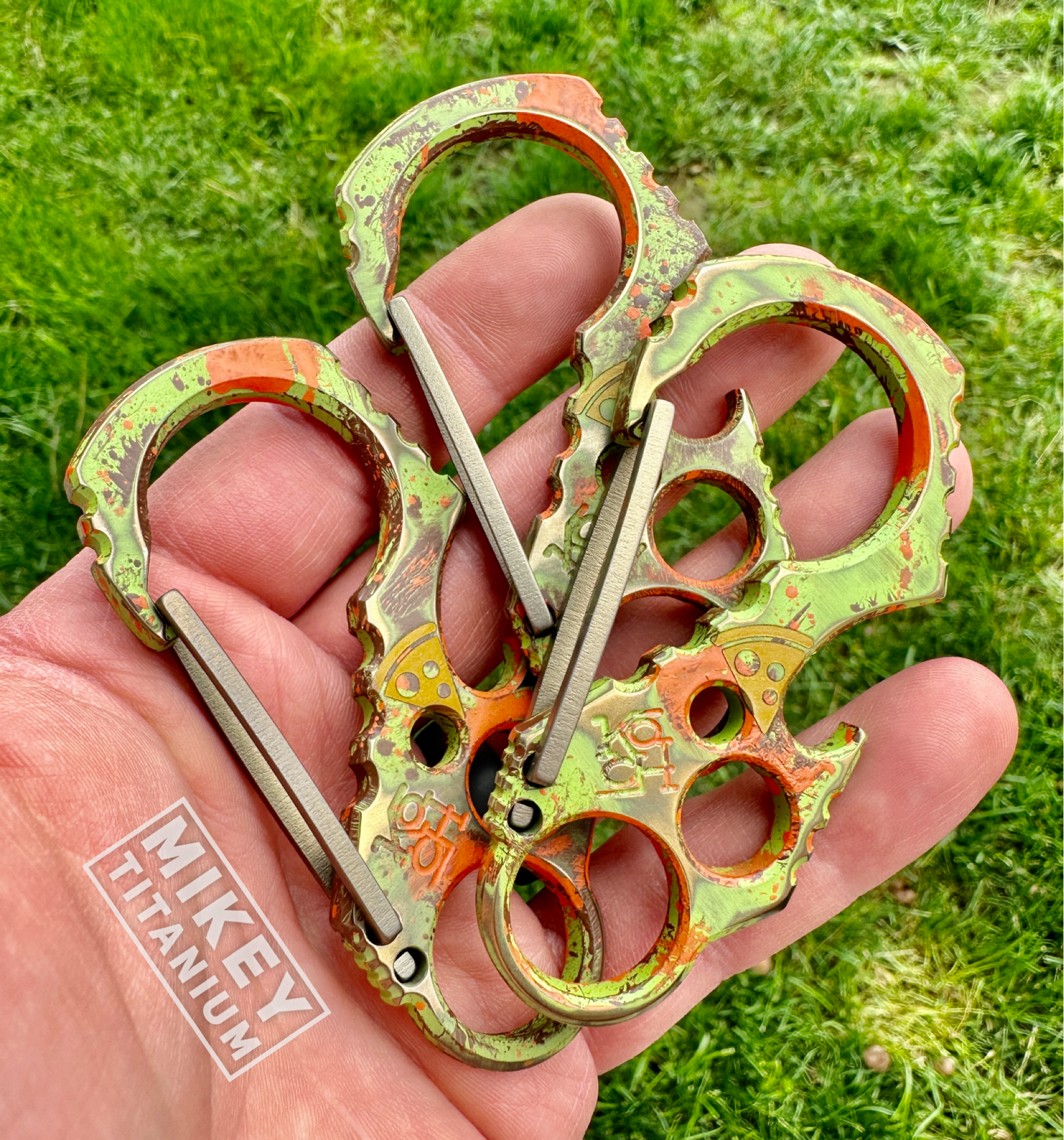 This new Carabiner design is 1.5" x 3.5" and will various in thickness and material depending on what is available. Featuring a bottle opener and various spots to hang your keys and gears from this new design is simple yet has some detailed CNC accents to add some character. The gate on these are nice and snappy, I hope you guys enjoy them!