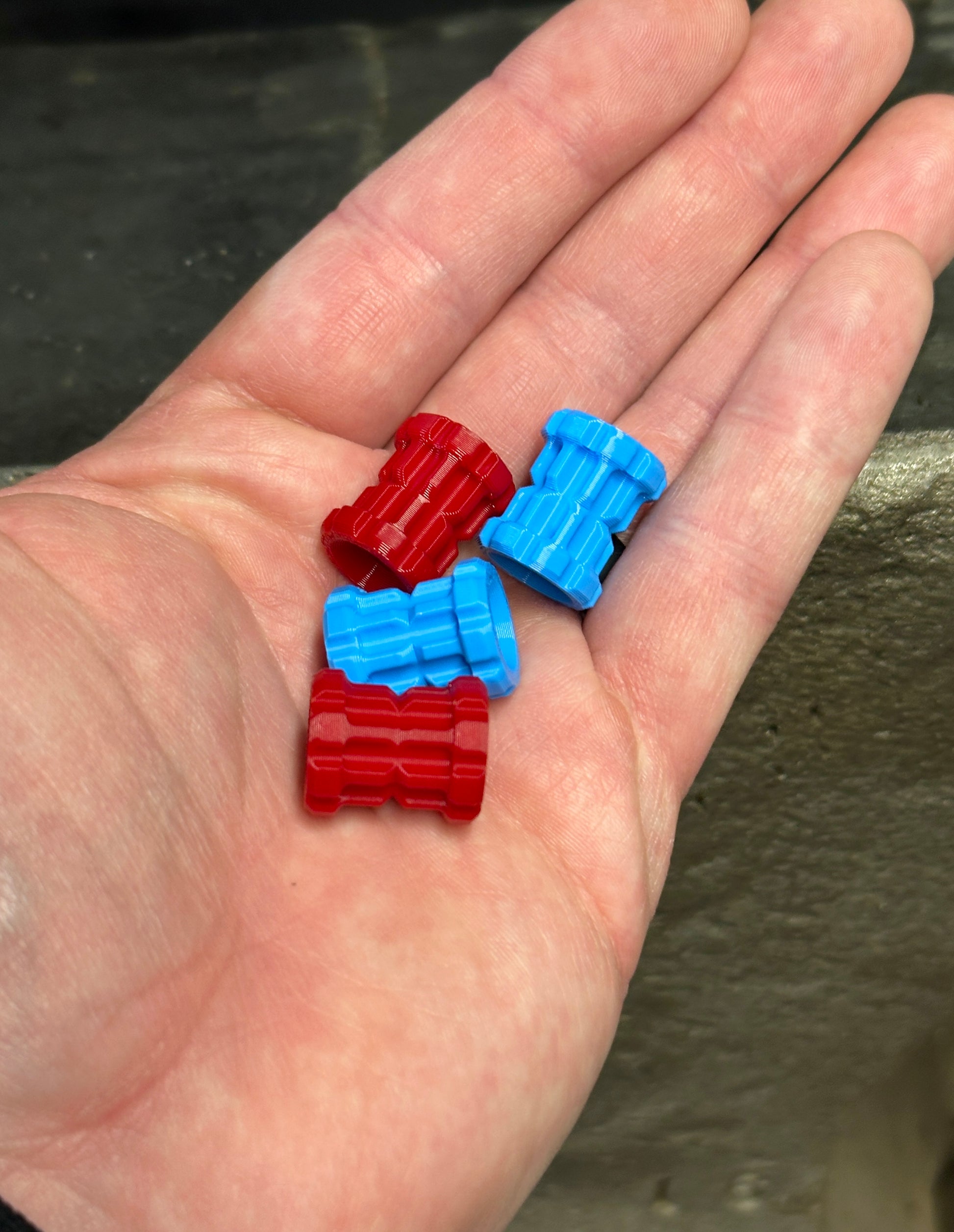 These lanyard Beads are 5/8" or 3/4" diameter which is noted in the drop down menu, with a 1/4" Hex center hole ( unless it’s a printed version ) . These beads are a new addition for everyone's EDC collection. I'm excited to add being they can be paired up with various tools and knives not just my products. However I'll be doing various finishes on them in pairs with some of my tools here and there.